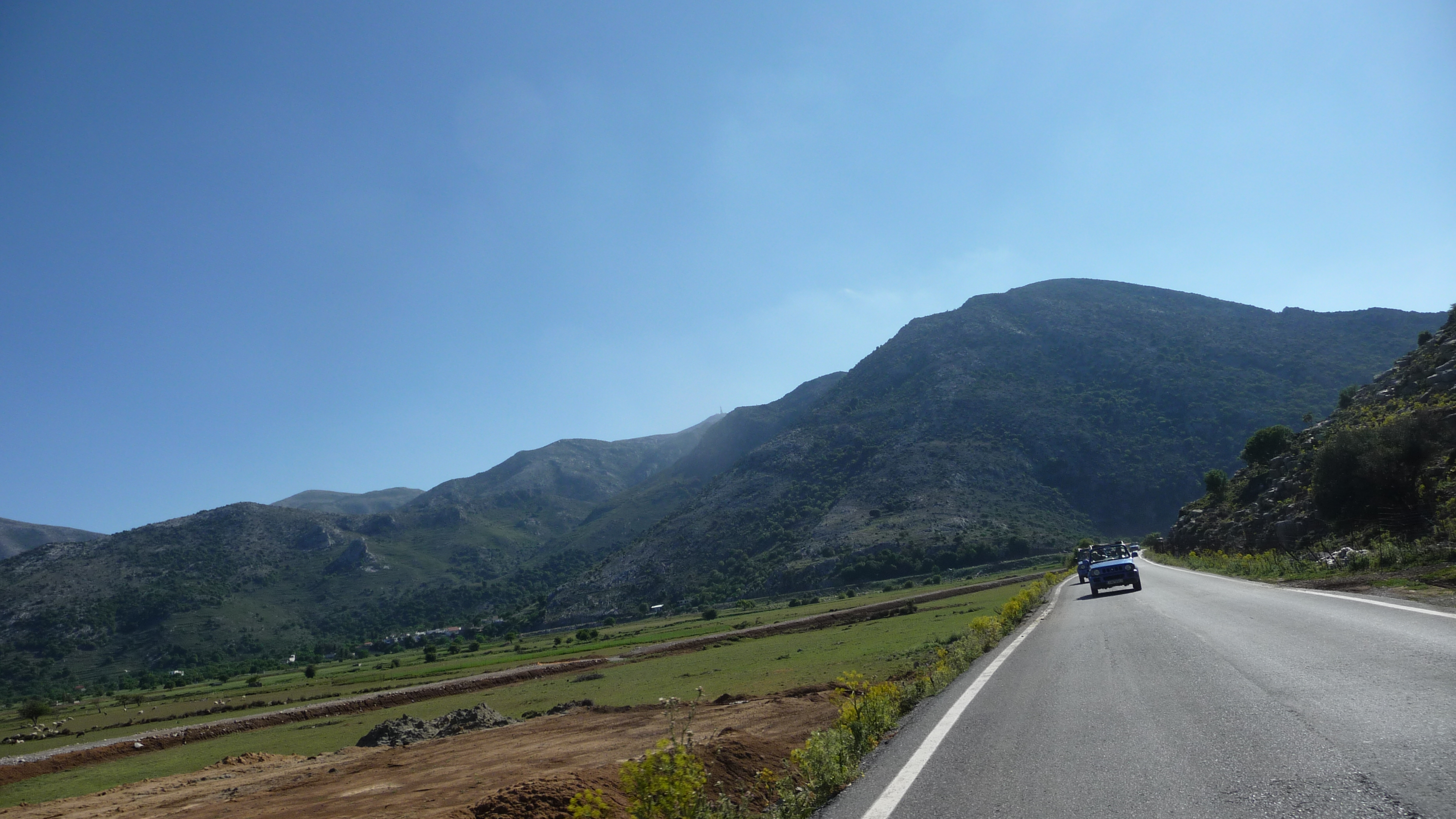 Der Dienstag war der letzte vollständige Tag unserer Reise. Der Morgen bestand aus mehrstündigen Seminaren und Präsentationen interner Projektarbeiten, doch schon am frühen Nachmittag sollten wir das absolute Highlight unserer Exkursion erfolgen: eine Jeep-Safari in die Lassithi-Hochebene! Wir wurden direkt vom Anissa Beach abgeholt und zur 5 Fahrminuten entfernte Jeep-Station in Chersonissos gebracht, wo wir bereits von unserem Guide Nikos empfangen wurden. Er sagte nur zu uns: "Seht ihr den Gipfel da ganz hinten? Genau DA wollen wir rauf!" und nach einer kurzen Einweisung ging es auch schon los! Erst noch über die alsphaltierten Straßen von Chersonissos, führte es uns dann schnell entlang von Olivenhainen über enge Schotterpisten und steile Hänge, bis wir unseren ersten Zwischenstopp in einem kleinen 60-Seelen-Dorf hinlegten. Unsere Aufmerksamkeit wanderte erst einmal zum kleinen Dorfesel Costa, der am Straßenrand stand und sich einige Streicheleinheiten gefallen ließ, dann führte uns Nikos kurz durch die engen Gassen entlang der typisch weißen Häuser und kleinen Gärten des Ortes, bevor wir uns einen traditionellen Raki in der sogenannten "Dorf Apotheke" abholten und uns weiter auf den Weg in die höheren Lagen des Dikti-Gebirges machten. 1 1/2 Stunden ging es weiter entlang steiler Schotter- und Geröll-Serpentinen bis auf 1.000m, wo wir einen weiteren Stopp einlegten, um die einzigartige Landschaft zu genießen; sogar das Meer konnte man von hier aus erspähen. Unsere letzte Etappe führte und durch unser eigentliches Ziel: die Lassithi-Hochebene (es war tatsächlich eine weitläufige Flachlandebene auf 800m Höhe; absolut beeindruckend!). Rund 4 Stunden waren wir insgesamt mit dem Jeep unterwegs, bevor wir abends zurück im Anissa Beach ankamen. Als letzter Punkt auf unserem Reiseplan stand ein Besuch mit anschließendem Abendessen in der 5***** Luxusanlage des Aldemar Royal Mare - dachten wir. Zurück im Anissa Beach hatte unsere Gruppenleitung nämlich noch eine spontane private Beach-Party organisiert und wir konnten gemütlich den letzten Abend der Seminarreise ausklingen lassen.